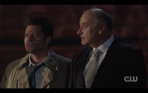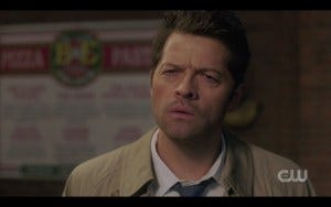 Other than the incredible catharsis this episode provided on multiple levels, the take-away from “Lebanon” is a celebration and a reminder of the evolution of its beloved characters. The next scene shows us, more subtly than the Winchesters’ story line here but no less vividly, the evolution of Castiel. I often miss the badass scary version of the angel who was introduced a decade ago, but here we get a reminder of just how scary that version could be (and how impressive). In a call back to his powerful introduction scene, Cas fixes the frightened Lebanon residents with a grim stare and announces: