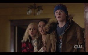 Anyway, Eliot (Cory Gruter-Andrew) has catalogued all four of the bunker’s residents, rather hilariously, as the Campbell maybe-brothers and “their weird sidekick with the trench coat and that kid with the dumb Bambi look on his face all the time.”