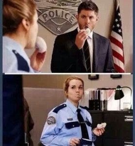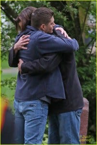 I once was invited to the set and when I arrived, I ran into Jensen in the craft services tent grabbing a snack. Dressed as Dean. Wearing the thigh holster.