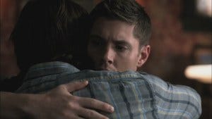 And finally, I love the fierceness with which Dean Winchester loves. It’s not always healthy; in fact, a lot of the time you could argue that it’s not. But why would it be, with the life that he’s lived and the incredible attachment traumas he’s endured? How could it be? Dean could have responded to all that loss and trauma by just refusing to attach to anyone, protecting himself from more pain by not caring about others and reveling in the self sufficiency that, let’s face it, he was uniquely qualified to pull off. But he didn’t. From the time the hits started coming, Dean Winchester refused to stop caring. He held Sam in his arms and carried him out of the fire and instinctively started comforting him, and somehow – against all odds – he never lost that capacity for empathy. It’s Dean who takes on the mantra of ‘saving people’ like it’s his job, wanting to save others from the pain he experienced and couldn’t avoid himself.
