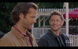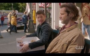 He knows this, but I’m also indescribably grateful to Jensen Ackles for caring so much about Dean, for taking care of him so well, for never phoning it in and in fact doing just the opposite. Starting in the middle seasons of the show, I started playing a little game with myself to see if I could figure out when something Dean did was not in the script, but an ad lib added by Jensen. After a while, I started sharing them with Jensen to see if I was right, and then we were both a little dumbfounded by how often I was! Because they’re such perfect touches!