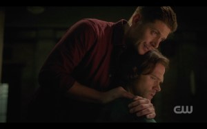 I loved this scene the first time I saw it, and maybe even more after we heard what it was like to film it. Jared had broken down on set too, unable to get the lines out and emotional and frustrated with himself. It was shortly before they made the very difficult decision to end the Show after next season, and I can’t help but think that much of that emotion was real – and all about saying goodbye to Dean and Sam, for real. Jensen said that when the hug came, it was as much Jensen hugging Jared as Dean hugging Sam, and that shows too. The raw reality of this scene makes it one of the most memorable in the show’s long history.
