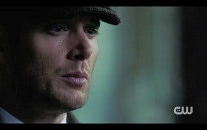 Jensen: When you’re there with the thing on your eye, that may be my favorite part. Cas sits down and he’s just like hammered and there’s nothing on your face! And meanwhile you’re like ahhhhh. You’ve got someone sitting across form you who looks like he just went through a meat grinder…