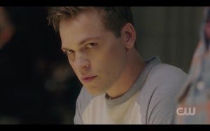Another dynamic that’s playing out in the bunker is Jack trying to come to terms with being human and without powers. Bobby spars with him in the bunker’s gym (where I suddenly picture lots of Winchester workouts…) and is very much the wise father figure that non-AU Bobby always was. I know this isn’t “our” Bobby, but it feels good to have his presence back on my show and I’m so pleased to have Jim Beaver back too. Alex Calvert continues to do a bang-up job of portraying Jack’s emotional struggle to come to terms with being more or less human; he’s so damn earnest, you can’t help but root for him.