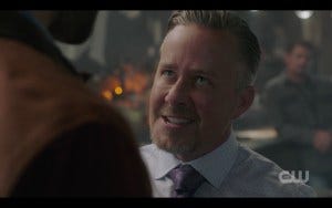 But during the live broadcast, at this point in the show (before that reveal had occurred), the CW played a commercial for the new Halloween film. It starts out with Sam Winchesters talking to – Mark Pellegrino! And it’s clearly a new scene, so it effectively spoils the reveal and confuses the hell out of everyone watching. Of course, those of us who had already seen the episode knew it was a scene coming up that hadn’t aired yet – which made it a terrible idea to place that advertisement right there.