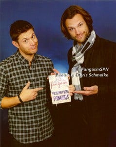 Fangasm Supernatural Fangirls – The true life adventure story of two women who fell head over heels in love with a little genre television show called Supernatural and never looked back. Or the misadventures of Lynn and Kathy – online, at conventions, and behind the scenes on the set of Supernatural – and how we figured out that being a fan was actually GOOD for you. Most days.