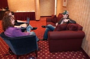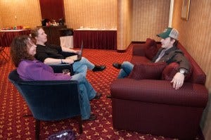 In conversations in the boys’ trailers, Kathy consistently provided the voice of reason (and elbows to the side none too gently) when my fangirl side threatened to derail my professional side. (Don’t let that fool you though, she was as affected as I was by Ackles in single layer black tee shirt and Padalecki taking off his Sam Winchester wardrobe as we chatted).