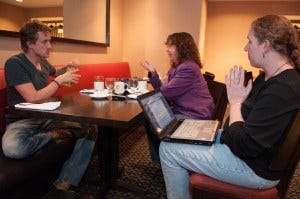 Sometimes we met up with the actors in the local coffee shop so we could caffeinate at the same time – Kathy’s love of coffee is legendary, and probably influenced my current addiction to iced lattes, though they’re decaf now. And on one memorable occasion, at Jim Beaver’s house, because he’s just that lovely.