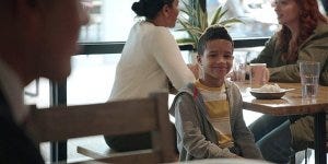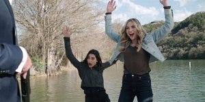 James and Kelly are reconnecting but run into a snag when she floats the idea of a family vacation and he unenthusiastically says “That sounds like fun…depends on work but…” She reminds him that he has to be more present with her. When she leaves a kid who overheard their conversation wryly notes, “You suck at girls.”