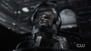 Kaia, in the interim, gets kidnapped by a bunch of angels who are of course dicks because really, angels are the worst on Supernatural. I get that they’re desperate with the whole going extinct thing, but wow, they are really awful other than Cas.
