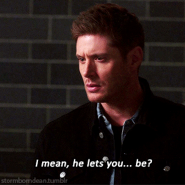 Dean: (brokenly and in wonder) Michael lets you… talk? He lets you… be?