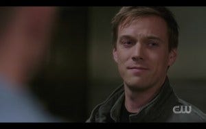 Flash to another scene, a diner called “Jaci’s Red Wagon”, an homage to Richard Speight’s wife Jaci. We all knew Jake Abel was returning as Adam/Michael, so it was no surprise to see him, but I had no idea his performance would be such a tour de force. Holy shit, that guy can act! When they were filming this episode, Jared and Jensen both said that Jake was so good that they had to up their game to keep up with him, and now I see why. He played both Adam and Michael – having a conversation with each other no less – and there was never a time you couldn’t tell exactly who he was. Everything changed – facial expressions, way of sitting, voice inflection, emotionality, formality – everything! Brilliant.