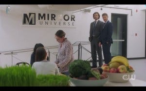 Chuck and Cas meet up with Sam and Dean at the chaotic Mirror Universe, and they have a rather tense conversation.