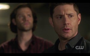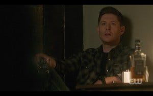 Dean can’t lie and also can’t seem to stop talking, telling Sam all about a mommy blogger who he’s apparently read before, taking great pleasure in the fact that she’s had to admit that her children are not so perfect and her gluten free popover tastes like crap…