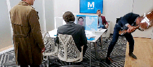 The formerly peaceful employees of Mirror Universe are also suddenly unable to lie, which results in confessions of affairs (and unexpected voyeurism), accusations of yogurt theft with resulting violence, and someone walking around exclaiming “I hate everyone!”