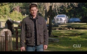 Chuck throws Dean across the graveyard like the Yellow Eyed Demon did in a similar graveyard all those years ago.