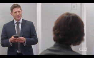 And then there was the political meta, as Sam and Dean catch a bit of a news program in which it’s reported that “the President” has finally handed over all his tax returns and fessed up to ties with Russia and North Korea – and making a demon deal with someone named Crowley. I admit I laughed out loud at that one – they really went there!