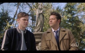 He tells Cas that he answered his call, and that he’s also here because of Jack. Much of fandom was spoiled for Rob Benedict’s return, including me, so I wasn’t shocked to see Chuck. But I was shocked to see Chuck so early in the episode. Most of us assumed he’d show up at the eleventh hour, the veritable Deus ex Machina to save the day and take Jack with him or something. But here he is, already.