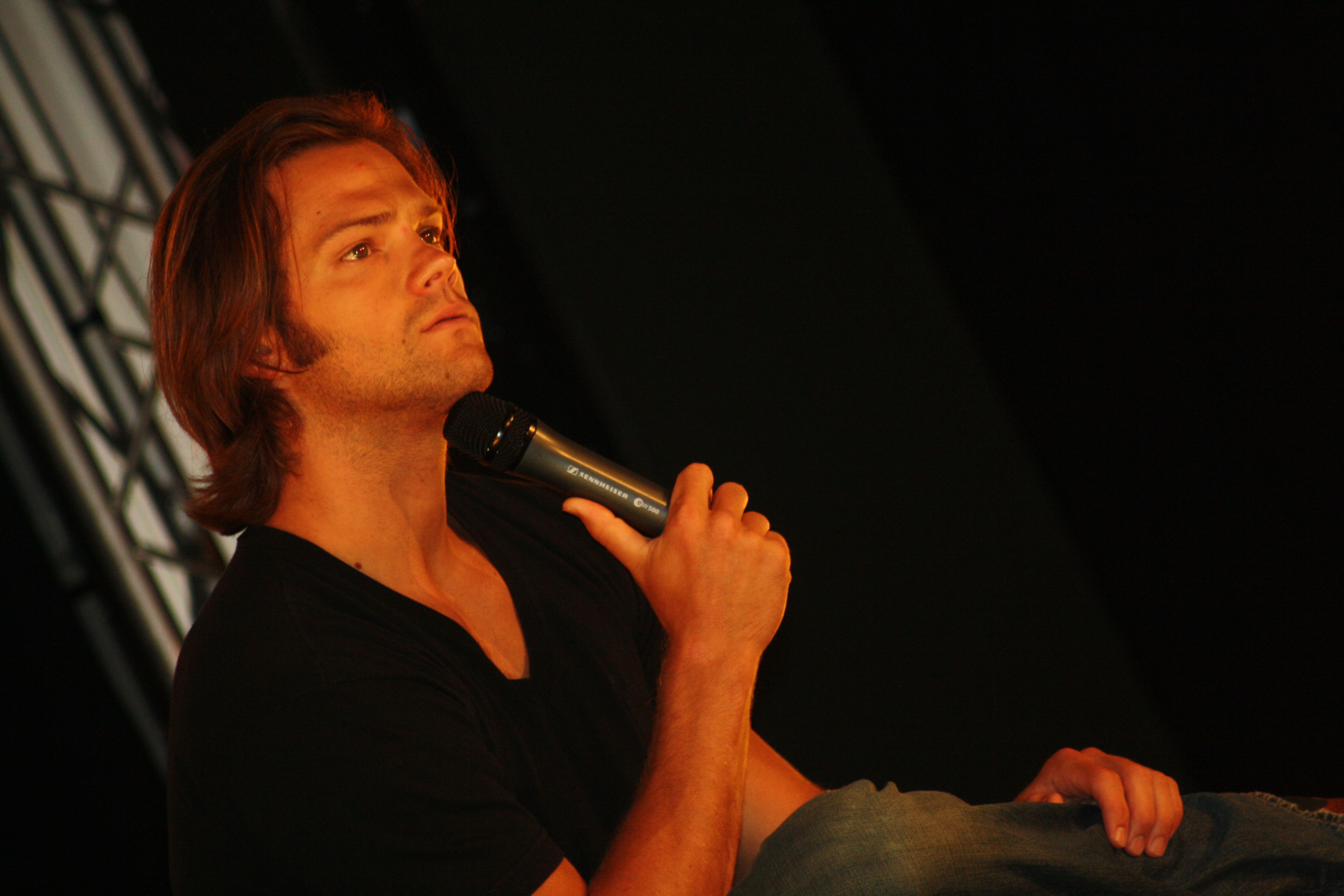Jared took the stage next, and was asked a provocative question right away – Does he find it scary that fans like the show so much and spend so much time online and writing fanfiction and don’t have a real life? Jared immediately protested that he never said that, to which the fan replied ‘no, that was me.’ We had a moment of cringing, as fan shame reared its ugly head. Luckily Jared didn’t buy in. He went on to say that what really scares him is that it’s stressful to come to conventions because “when you see people who enjoy it so much, it’s a great responsibility. I still get nervous to meet you guys. It’s scary when you know someone likes something so much because you don’t want to disappoint them.” Now that’s a classy answer – no wonder this is the show we follow.