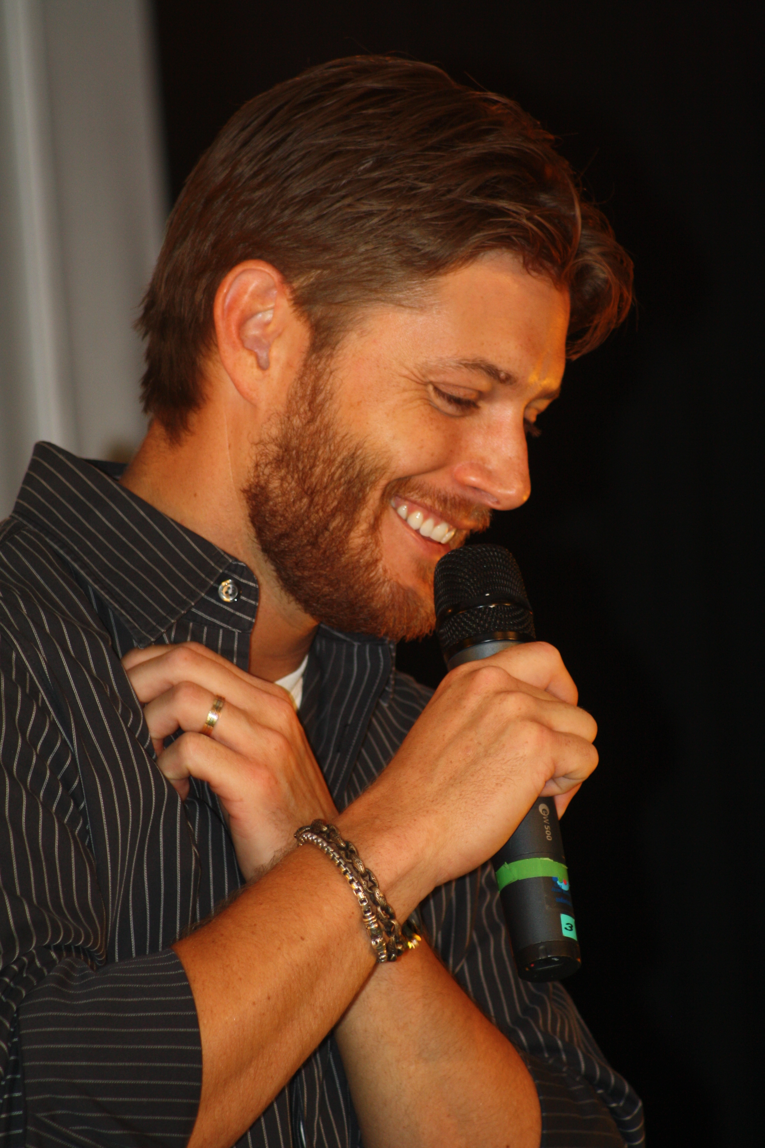 A fan asked whether he was still able to walk around (like anyone else) or had that changed since the show. Jensen: “As far as popularity, being ‘somewhat famous’ … I wasn’t much for the public eye before, I like to live a pretty private life, and I still can. Supernatural fans are very respectful. I got lucky to be on a show that has such cool fans.” The crowd started to cheer, but Jensen stopped them and went on. “No really, I wanna reiterate that – on a day to day basis if someone comes up to me, they’re respectful, intelligent, and they ask great questions. Not screaming or throwing themselves ….I’ve seen that and I don’t know how I’d deal with that.”