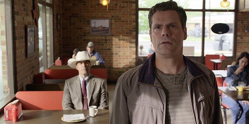 The diner scene in which James confronts Campbell (aptly played by Jesse Bush) was particularly satisfying. Campbell scoffs that he’ll have the charges dismissed easily, so the look on his face is priceless when he looks up to see his arrest warrant announced on the evening news on the television in the restaurant.