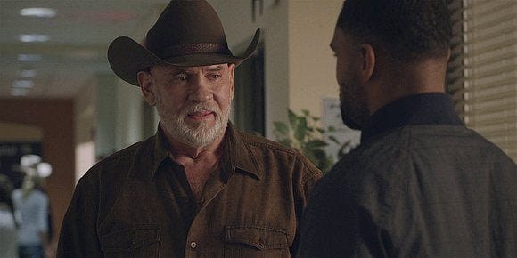 Bonham plays dad to Trey too, apologizing for letting the cat out of the bag, but Trey realizes that Garrison was just the tip of the iceberg, that sometimes love just isn’t enough. He also says he knows that he’s good in a crisis but that’s not how he wants to live his life, he knows now ‘where to go from here’ as last week’s episode kept asking. That takes courage too, to decide that what you want to do is not to play the stereotypical ‘hero’ but to change the world in other ways.
