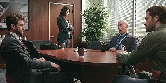 The glares between these two are epic and watching the two characters posture and try to stare each other down is fascinating. Henderson Wade and Jared Padalecki have a lot of chemistry, which makes their mutual hate and jockeying for power a lot more interesting to watch. I actually wish we could have had more of the two of them – when they’re onscreen together, you can’t look away. And as awful as Serano is, he’s also a fascinating character, in part thanks to Wade. There’s a bit of grudging mutual respect for each other as dangerous and powerful that makes for the best portrayals of enemies.