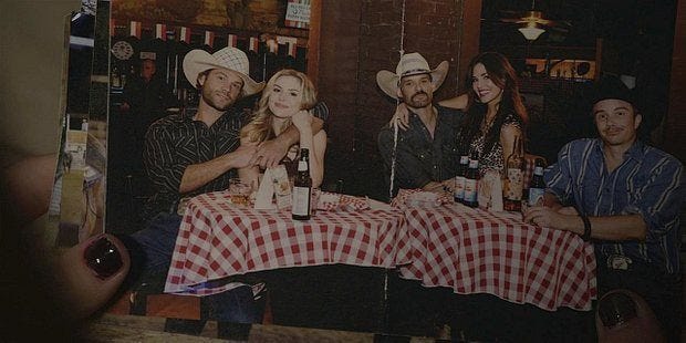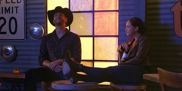 Micki and Walker go to see Minnie and her band at a place that looks a whole lot like Jensen Ackles’ Family Business Beer Company, with the trees and string lights and picnic tables, but I guess that’s just what a lot of that area of Texas looks like – and I love the look.
