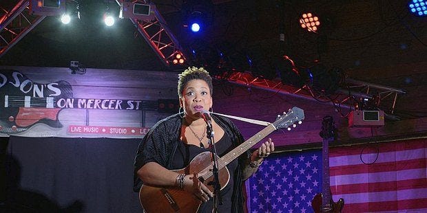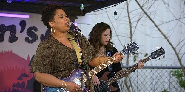 Minnie Jayne is called up onstage to play at the Robert Johnson anniversary event, and she tells the story, straight out of a “Supernatural” episode, about how the Devil appeared to him at a crossroads and he made a deal, six strings for his soul.