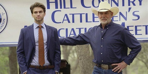The next day, Stan the aspiring DA is at a Cattleman’s fundraiser that once again looks like Family Business Beer Company. Liam tells Stan that he can’t endorse him, saying that people are scared of change, but he’s not. He asks his dad, where did his grandfather’s campaign go wrong?