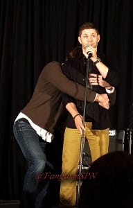 Jensen turned to Jared at one point in the panel and asked, “Is there a reason you’re sitting so close to me?”