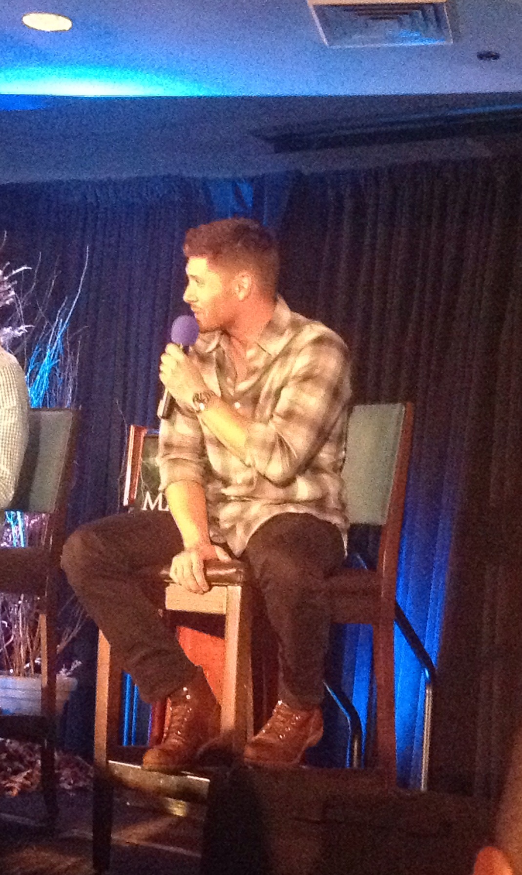There were quite a few questions about Dean, which made Lynn a very happy fangirl. A fan asked whether it was harder to play Dean as a hero or as the darker character he’s been this season. Jensen said that what’s actually most difficult is to play both sides of Dean and yet maintain continuity so that you’re still playing the same character. (Which probably wouldn’t occur to most of us who are not actors, but makes a lot of sense).