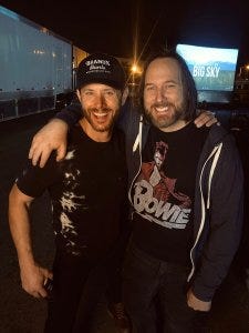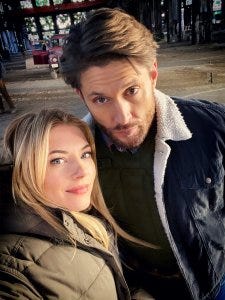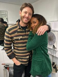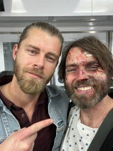 The brothers smile at each other. (Luke Mitchell and Seth Gabel posted an equally smiley behind the scenes shot)