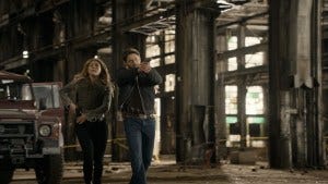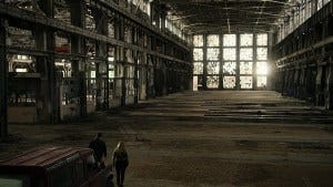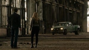 Jenny and Beau meet up with Buck at a big empty storage warehouse, which makes for an impressive set. Sunny waits in the truck.