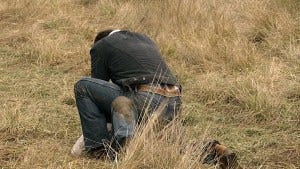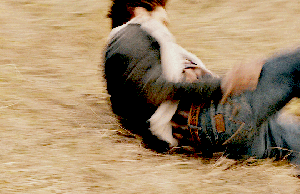 At that moment, Beau and Jenny show up and Beau, in a fit of rage, tackles Buck – right on the precipice of a big hill!