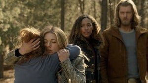 Cassie points out that he’s helping now though. They eventually find the right gate and hike in toward the cabin that will be ahead. They don’t find anyone there, but there’s a bloody rag there so Cormac knows his father has been there.