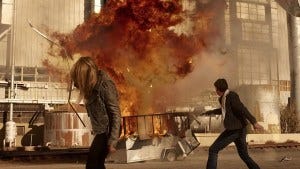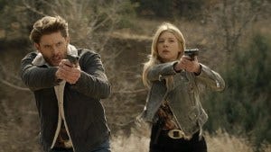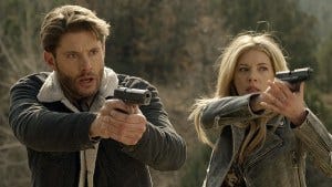 Beau rolls over and over, and we get to see a lot of both his talented stunt double and then athletic Ackles. Beau staggers up.