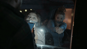 We see a foot go through a trip wire light and can’t really tell who it is, and Jenny yells, terrified, “Beau, wait!”