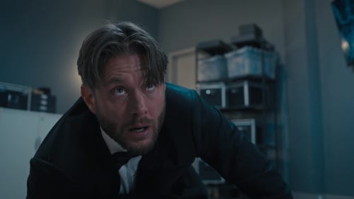 It’s a suspense filled juxtaposition of scenes then, Evan trying to finish the hack, Blythe trying to stall the consul, Meachum having an all out fist fight in a tux.