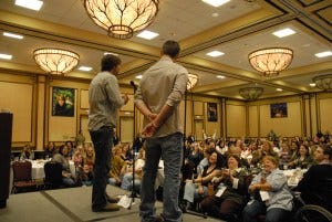At the breakfast this morning, and at the Q&As, the guys got several questions about soulless!Sam, and how both Jensen and Jared feel about that story arc being at an end. Jensen said once again how off balance he’d been about trying to play Dean opposite a Sam who was so different — which in turn makes Dean a different character, since he doesn’t have that relationship anymore. He didn’t know who Sam was — or who Dean was anymore. So he was very happy when Sam got his soul back, and he could go back to playing Dean as Dean, the character he loves playing. As he tells it: