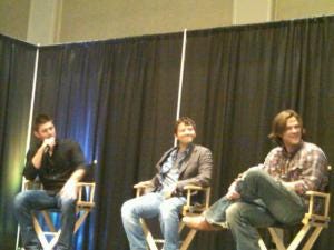 A fan began with a question that’s been on many fans’ minds. What’s with all the Dean and babies? (cue roomful of ‘awwww’) and are there any baby-related behind the scenes anecdotes? Apparently the answer is an emphatic yes, and we can all look forward to seeing a lot of them on this season’s gag reel. They had several babies, and Jensen confided that one baby was definitely NOT a fan.