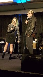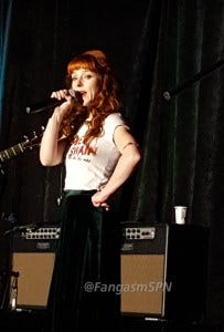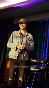 Ruth said she wore the flower crown for her dad, who’s tone deaf but used to sing the song about San Francisco that says “if you’re going to San Francisco, be sure to wear some flowers in your hair…” Awww. Ruth writes about her own struggle to feel comfortable enough to sing onstage, and how the SPNFamily and the Saturday Night Special helped her get there, in her chapter in Family Don’t End With Blood. She performed later that night onstage, and every time I hear her killing it now I think of how much fear and uncertainty she had about doing that. You rock, Ruth!