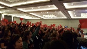 Because this fandom can always be counted on to be awesome, Mark’s last con didn’t go unrecognized – just like Alex Calvert’s first con didn’t either. There were signs for all of us to hold up with the line Mark had wanted to say in his last episode, that inexplicably got cut. ‘Even when I lose, I win’ on red signs were held high all over the ballroom when Mark took the stage, and he was clearly moved. He pulled out his phone and started filming, and from where I was sitting, I could tell how much it meant to him. As the panel progressed, Mark was more serious than usual, and there were several times that I could see his eyes were glistening. Or maybe that was mine; it got hard to tell. I didn’t expect to be as emotional as I was, but when Mark left the stage I had already grabbed for the tissues several times. Thank you, Mark, for the amazing job you did bringing Crowley to life, for being a fan yourself and for loving fandom the way you do, and for being a part of Family Don’t End With Blood.