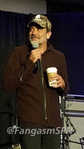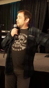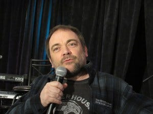 Mark Sheppard’s panel, as I said, was intensely emotional. He came out to a sea of red signs of support, and seeing how touched he was made me reach for the tissues right away. Mark was a class act to the end, thanking Rich and Rob and Louden Swain for remaking the cons into the amazing things they are now (the Saturday Night Special was something Sheppard contributed to as well). He thanked the fans too, and said that he kept on being Crowley for eight years because of us.
