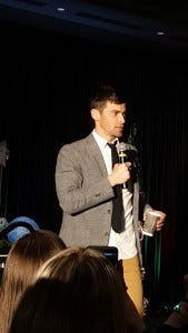 He told some adorable stories about his kids, including one where the adults tried to keep the kids amused in the morning so they could sleep in – by buying a karaoke machine?? Maybe not the most well thought out plan, Misha admitted.