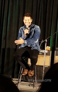 Misha Collins’ panel is always the highlight of Saturday. From his very first panel, I’ve loved Misha’s quirky sense of humor and ability to let some genuine emotion (of all sorts) come through when he’s onstage. This panel started the way I love Misha panels to start, with a rousing chorus of “Where’s Misha?” by Rob and Rich and the band. Unfortunately that song always gets stuck in my head and stays there for way too long, but it’s worth it to hear Rich riff on where Misha might be – which is usually some version of ‘in the bathroom’.