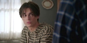 Cordi and Geri have another adorable awkward interaction in the truck, him wanting to tell the family about “us” and her reluctant to make it so serious. In fact, in keeping with the episode theme, she safe words him with a “Dolly”. Trey walks by and sees them about to kiss and Geri pulls away, even though Trey seems like the biggest Cordri shipper ever. (And yes, he gets the ship name correct because this show is very fandom savvy).