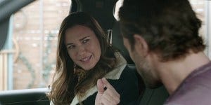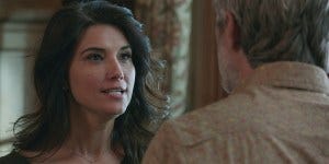 Meanwhile, Cassie discreetly brings a drunk and passed out on his pickup truck Dan back home, Ashley’s gift for comedy once again on point and Dan Annable showing off his gift for physical comedy too. Those two are priceless together, right down to Dan trying to climb in the window of her SUV and Cassie’s frustrated head shake. Denise asks Cassie for discretion and pledges her support for Cassie’s search for Miles in return, as Cassie stays determined to be “Switzerland” in all this family feud business.