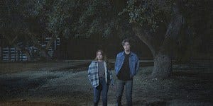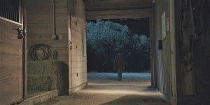 As she walks away, Geri turns around to see Bonham leaving the barn, silhouetted in the dark, dragging a shovel and carrying the infamous lantern.