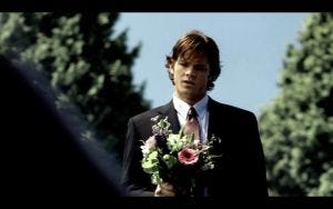 Meanwhile, Sam, looking unbearably young and adorable in a suit, brings flowers to Jessica’s grave. It seems like a tender and sad scene, then suddenly a hand claws its way up from the gravedirt and grabs for Sam. Pretty sure I screamed the first time I saw that. Early Supernatural really was like a 42 minute horror movie each week.